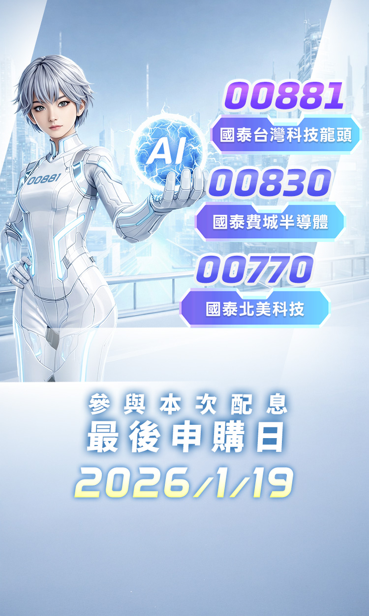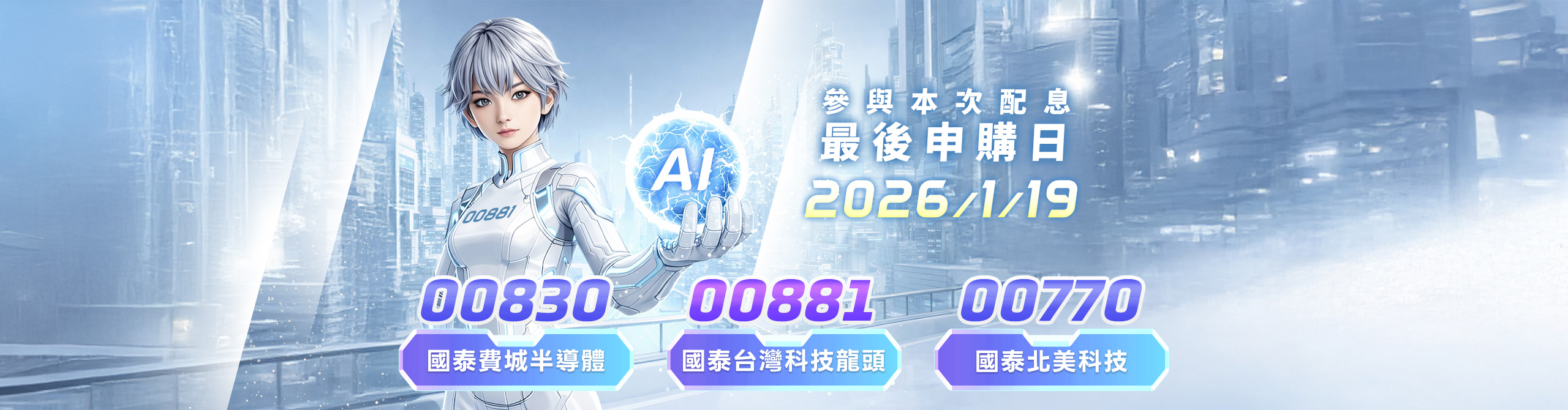 [{"TopPickAppearInHomePage":true,"TopPickFund":"國泰台灣5G PLUS ETF基金","TopPickType":"","TopPickFundType":"股票型","TopPickStockType":"國內ETF","TopPickUrl":"https://cathaysite.tw/qg3432Z","TopPickFundCode":"CR","TopPickStockCode":"00881","TopPickFundName":"國泰台灣5G+","TopPickDividendFrequency":"每年2次","TopPickEarningMonths":"1、8","TopPickTrackingIndex":"臺灣指數公司特選臺灣上市上櫃FactSet 5G+通訊指數","TopPickNotice":"","TopPickHistoricalDividendUrl":"https://www.cathaysite.com.tw/ETF/detail/ECR?tab=etf5","TopPickListingPageThumbnail":"3fc5b07e-2051-439c-a863-b5cde576b265.png","TopPickHomePageThumbnail":"f97fd7a4-14c7-47b8-ac91-aa654b9211f5.png","TopPickSkills":[{"TopPickSkillName":"雙A伏特","TopPickSkillDescription":"涵蓋台積電、輝達與蘋果供應鏈核心,卡位AI趨勢,後市動能強勁"},{"TopPickSkillName":"喵準龍頭","TopPickSkillDescription":"AI商機起飛、掌握台灣30大科技龍頭股,科技市值型ETF再升級"}],"TopPickContent":[{"TopPickContentTitle":"台股心臟 科技動能全開","TopPickContentDescription":"AI 盛世來臨!雲端四巨頭持續加碼資本支出,推升台灣相關供應鏈起飛,可望支撐台股中長期表現。","TopPickContentImageSet":[{"Desktop":"","Mobile":"73c21f77-dee3-4997-b9dc-36ac21a42c0b.png","Alt":"台股類股報酬表現","Disclaimer":"<p><span style=\"background-color:rgb(255,255,255);color:rgb(0,0,0);font-size:1em;\">(1)00881之追蹤指數為臺灣指數公司特選臺灣上市上櫃FactSet科技龍頭通訊指數。(2)上述各指數由上而下分別為臺灣指數公司特選臺灣上市上櫃FactSet科技龍頭通訊指數、電子類指數、台灣加權報酬指數、金融保險類指數、鋼鐵類指數、水泥類指數,</span><span style=\"background-color:rgb(255,255,255);color:rgb(255,0,0);font-size:1.125em;\"><strong>各指數皆為含息報酬指數,指數僅供參考用途,指數之歷史績效不應被視為現在或未來表現及績效的保證,亦不代表基金現在或未來之實際報酬率。(3)以上僅為ETF追蹤指數績效之表現,不代表本公司ETF 基金之實際報酬率及未來績效保證,不同時間進場投資,其結果將可能不同,且並未考量交易成本。在以上的計算條件及方式下,所得之未來績效報酬率走勢圖可能與歷史數據不同,致使投資承擔風險增加、收益減少,端視未來金融環境變化狀況而定。</strong></span><span style=\"background-color:rgb(255,255,255);color:rgb(0,0,0);font-size:1em;\">(4)總報酬率=(期末投資金額-期初投資金額+投資期間領取的股利或配息)÷期初投資金額。(5)雲端四巨頭係指亞馬遜、Alphabet、Meta與微軟,2026年資本支出將至4,540億美元。(6)資料來源:台灣指數公司、台灣證交所、Bloomberg 、摩根士丹利,統計期間2020/10/31~2025/10/31,國泰投信整理,2025/11。</span><br><span style=\"font-size:1.125em;\"> </span></p>"}]},{"TopPickContentTitle":"科技市值ETF 首選00881","TopPickContentDescription":"掌握AI成長動能,30檔科技龍頭一次入手,受投資人青睞,為同類型ETF中規模與人氣雙冠王!","TopPickContentImageSet":[{"Desktop":"","Mobile":"f7761b21-63b9-4420-a2f3-fe076b5db98b.png","Alt":"00881報酬和配息紀錄","Disclaimer":"<p><span style=\"background-color:rgb(255,255,255);color:rgb(0,0,0);font-size:1em;\">(1)本文提及之單筆報酬以00881國泰台灣科技龍頭(及同類型基金(投信投顧公會分類之國內指數股票型-一般型ETF-主題式/產業型ETF)計算。單筆投資排名及同類型基金檔數分別為:近3個月第6名/31檔、近6個月第5名/31檔,近1年第5名/29檔,近2年第3名/26檔,近3年第4名/20檔。(2)本基金成立時間2020/12/01。</span><span style=\"background-color:rgb(255,255,255);color:rgb(255,0,0);font-size:1.125em;\"><strong>(3)基金之歷史績效不應被視為現在或未來表現及績效的保證。(4)基金配息不代表基金實際報酬,且過去配息不代表未來配息;基金淨值可能因市場因素而上下波動。基金配息組成項目和完整配息資訊請參閱國泰投信官方網站(https://www.cathaysite.com.tw )。</strong></span><span style=\"background-color:rgb(255,255,255);color:rgb(0,0,0);font-size:1em;\">(4)截至2025/10/31,00881之規模為新台幣76,796,265,226元,受益人數275,739人,同類型係指投信投顧公會分類之國內指數股票型-一般型ETF-主題式/產業型ETF。(5)資料來源:投信投顧公會、國泰投信,2025/10/31。</span></p>"}]},{"TopPickContentTitle":"注意事項","TopPickContentDescription":"","TopPickContentImageSet":[{"Desktop":"","Mobile":"4a94f0da-bc1d-4b8e-99a9-454b91ee7b35.png","Alt":"注意事項","Disclaimer":"<p><span style=\"color:rgb(0,0,0);font-size:1.125em;\">註:(1)國泰台灣科技龍頭為國泰台灣科技龍頭ETF基金(原名:國泰台灣5G PLUS ETF基金)之證券簡稱(證券代碼:00881);本基金可分配收益為投資所得之現金股利、稅後利息收入及基金收益分配,扣除本基金應負擔之各項成本費用後,為本基金之可分配收益,其他所得之符合(A)規定者,得由經理公司決定是否增配。(A)前述可分配收益若另增配已實現資本利得扣除資本損失(包括已實現及未實現之資本損失)及本基金應負擔之費用時,則本基金於收益分配評價日之每受益權單位之淨資產價值應高於信託契約第五條第二項所列本基金每受益權單位之發行價格,且每受益權單位之淨資產價值減去當次每受益權單位可分配收益之餘額,不得低於每受益權單位之發行價格。(B)本基金可分配收益之分配,經經理公司作成收益分配決定後,於每年1、8月起第45個營業日前(含)進行分配;收益分配之停止變更受益人名簿記載期間及收益分配基準日由經理公司於期前公告。經理公司認為有必要時,可於分配前隨時修正收益分