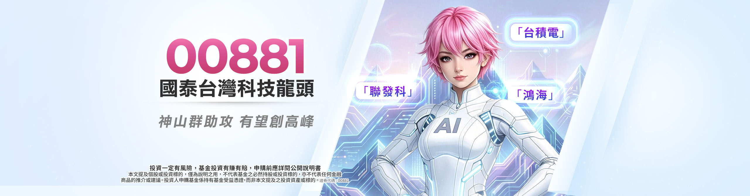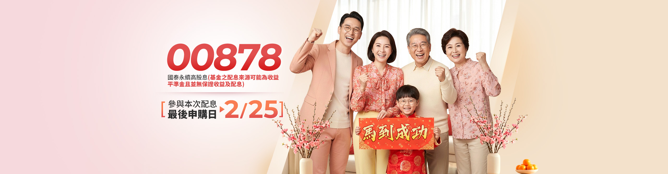 [{"TopPickAppearInHomePage":true,"TopPickFund":"國泰台灣ESG永續高股息ETF基金","TopPickType":"","TopPickFundType":"股票型","TopPickStockType":"國內ETF","TopPickUrl":"https://www.cathaysite.com.tw/ETF/detail/ECN","TopPickFundCode":"CN","TopPickStockCode":"00878","TopPickFundName":"國泰永續高股息","TopPickDividendFrequency":"季配","TopPickEarningMonths":"2、5、8、11","TopPickTrackingIndex":"MSCI臺灣ESG永續高股息精選30指數","TopPickNotice":"","TopPickHistoricalDividendUrl":"https://www.cathaysite.com.tw/ETF/detail/ECN?tab=etf5","TopPickListingPageThumbnail":"af1f0bd1-cdd3-485f-b010-8c19c392cf3c.png","TopPickHomePageThumbnail":"5222f58f-1c6f-4007-9a72-301d64b10bee.png","TopPickSkills":[{"TopPickSkillName":"人氣引力","TopPickSkillDescription":"超過170萬股民支持,年輕人、上班族、親子理財存股首選"},{"TopPickSkillName":"存股標配","TopPickSkillDescription":"全台首檔季配搭收益平準金的台股ETF,適合存股族長期持有"}],"TopPickContent":[{"TopPickContentTitle":"百萬人氣 存股首選","TopPickContentDescription":"國民ETF的00878,具備平準金+季配機制,有助投資人長期存股和打造現金流!","TopPickContentImageSet":[{"Desktop":"","Mobile":"deca99b6-a93a-487a-aa0c-3da98f893c41.png","Alt":"00878配息金額","Disclaimer":"<p><span style=\"background-color:rgb(255,255,255);color:black;font-size:12pt;\">資料來源:投信投顧公會、國泰投信官網,00878之受益人數為1,754,709人;資料日期:2025/12/31。以上圖表月份為收益分配評價月份。基金配息組成項目和完整配息資訊請參閱公開說明書和</span><a href=\"https://www.cathaysite.com.tw/\"><span style=\"color:black;font-size:12pt;\">國泰投信官方網站</span></a><span style=\"background-color:rgb(255,255,255);color:black;font-size:1em;\"> 。</span><span style=\"background-color:rgb(255,255,255);color:rgb(255,0,0);font-size:1.125em;\"><strong>基金配息不代表基金實際報酬,且過去配息不代表未來配息;基金淨值可能因市場因素而上下波動。</strong></span></p>"}]},{"TopPickContentTitle":"ESG助攻 台股標配","TopPickContentDescription":"老字號的00878均衡配置電金傳產業,免盯盤、避景氣循環股,有望攻守兼備!","TopPickContentImageSet":[{"Desktop":"","Mobile":"0cc3fb7b-18a2-4690-9ecd-5b5b65971bfc.png","Alt":"00878成分","Disclaimer":"<p><span style=\"background-color:rgb(255,255,255);color:black;font-size:1em;\">資料來源:投信投顧公會、國泰投信整理,2025/12/31。</span><span style=\"background-color:rgb(255,255,255);color:rgb(255,0,0);font-size:1.125em;\"><strong>有關本基金之ESG 資訊,投資人應於申購前詳閱基金公開說明書或投資人須知所載之基金所有特色或目標等資訊,或至</strong></span><a href=\"https://cathaysite.tw/J3DobPN\"><span style=\"color:rgb(255,0,0);font-size:1.125em;\"><strong>國泰投信官方網站</strong></span></a><span style=\"background-color:rgb(255,255,255);color:rgb(255,0,0);font-size:1.125em;\"><strong>查詢。本文提及個股或產業或投資標的僅為說明之用,不代表本基金之必然持股或投資標的,亦不代表任何金融商品的推介或建議。 投資人申購本基金係持有基金受益憑證,而非本文提及之投資資產或標的。</strong></span></p>"}]},{"TopPickContentTitle":"注意事項","TopPickContentDescription":"","TopPickContentImageSet":[{"Desktop":"","Mobile":"111a25fb-0987-4480-9fb0-ddf9b597802b.png","Alt":"注意事項","Disclaimer":"<p><span style=\"color:black;font-size:14.0pt;\"><strong>註:(1)國泰永續高股息</strong></span><span style=\"color:red;font-size:14.0pt;\"><strong>(基金之配息來源可能為收益平準金且並無保證收益及配息)</strong></span><span style=\"color:black;font-size:14.0pt;\"><strong>為國泰台灣ESG永續高股息ETF基金</strong></span><span style=\"color:red;font-size:14.0pt;\"><strong>(基金之配息來源可能為收益平準金且並無保證收益及配息)</strong></span><span style=\"color:black;font-size:14.0pt;\"><strong>之證券簡稱(證券代碼:00878);</strong></span><span style=\"color:red;font-size:14.0pt;\"><strong>有關本基金之ESG 資訊,投資人應於申購前詳閱基金公開說明書或投資人須知所載之基金所有特色或目標等資訊,或至國泰投信官方網站查詢(</strong></span><a href=\"https://cathaysite.tw/J3DobPN\"><span style=\"color:red;font-size:14.0pt;\"><strong>https://cathaysite.tw/J3DobPN</strong></span></a><span style=\"color:red;font-size:14.0pt;\"><strong>)</strong></span><span style=\"color:black;font-size:14.0pt;\"><strong>;本基金可配分收益為除息交易日前(不含當日)投資所得之現金股利、稅後利息收入、基金受益憑證之收益分配及收益平準金,扣除本基金應負擔之各項成本費用後,為本基金之可分配收益,其他所得如符合(A)規定者,由經理公司決定是否增配。(A)前述可分配收益若另增已實現資本利得扣除資本損失(包括已實現及未實現之資本損失)及本基金應負擔之費用時,則本基金於收益分配評價日之每受益權單位之淨資產價值應高於信託契約第五條第二項所列本基金每受益權單位之發行價格,且每受益權單位之淨資產價值減去當次每受益權單位可分配收益之餘額,不得低於每受益權單位之發行價格。(B)本基金可分配收益之分配,經經理公司作成收益分配決定後,於每年2、5、8及11月起第45個營業日前(含)進行分配;收益分配之停止變更受益人名簿記載期間及收益分配基準日由經理公司於期前公告。經理公司認為有必要時,可於分配前隨時修正收益分配金額。本基金投資之企業,其股利(股息)配發時間及金額視個別企業決定(如該企業一年可能集中於一次或兩次配發),故每期配息金額之決定主要透過對投資組合企業長