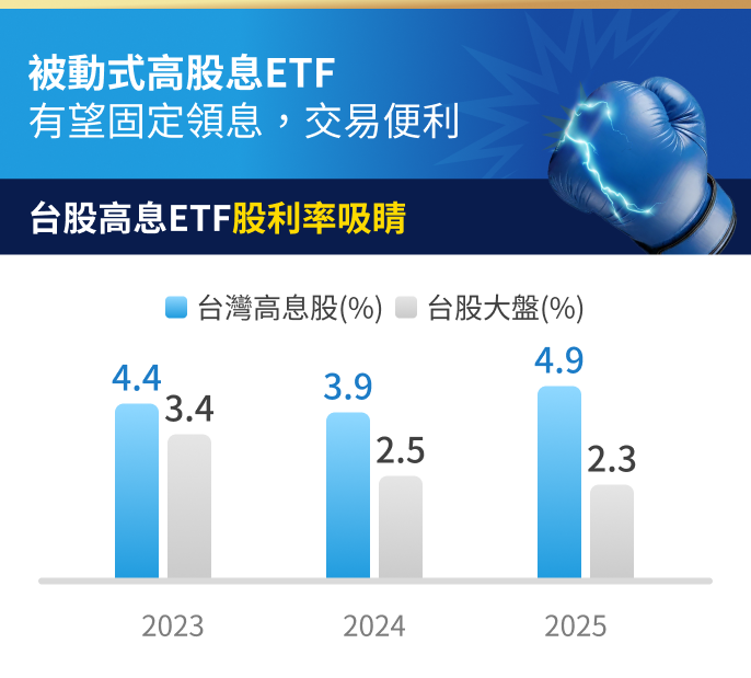 採「現金股利金額」+「現金股利率」雙指標戰術,聚焦優質龍頭權值股,搭配配息佳的台股強棒,打造強韌資產底氣!