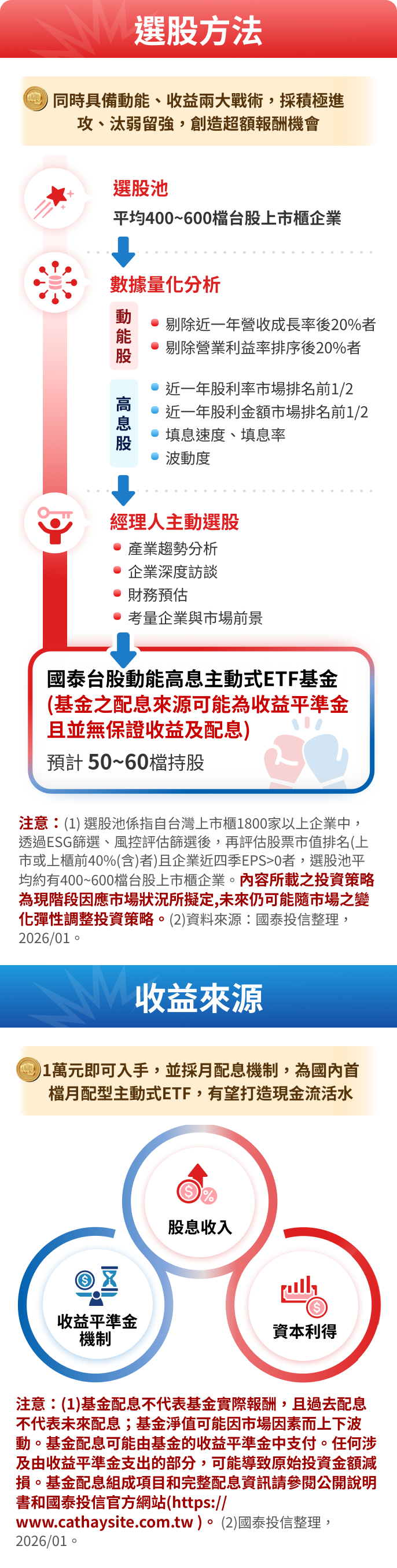 注意:(1)本文提及個股或產業或投資標的僅供說明之用,不代表任何金融商品的推介或建議,亦不代表未來基金之必要持股或投資標的,實際配置以基金成立後,官網公告為準。投資人申購本基金係持有基金受益憑證,而非本文提及之投資資產或標的。(2)本文所載之投資策略為現階段因應市場狀況所擬定,未來仍可能隨市場之變化彈性調整投資策略。 (3)資料來源:國泰投信整理,2026/01。